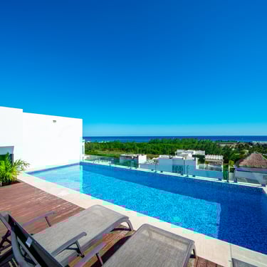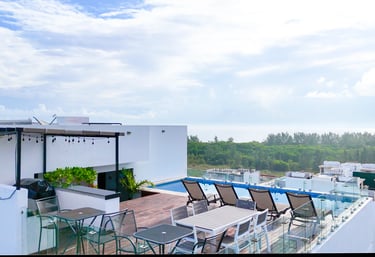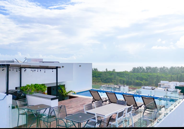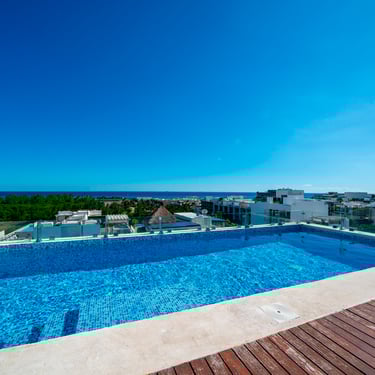 El edificio cuenta con estacionamiento, vigilancia, y se encuentra en una de las zonas más seguras de Playa del Carmen. Además de un rooftop con vista a la Playa y el manglar